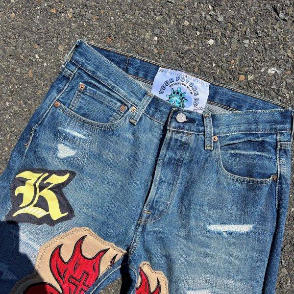 Done in-home by Yours Truly. All custom pieces are done with NEW jeans, not recycled.