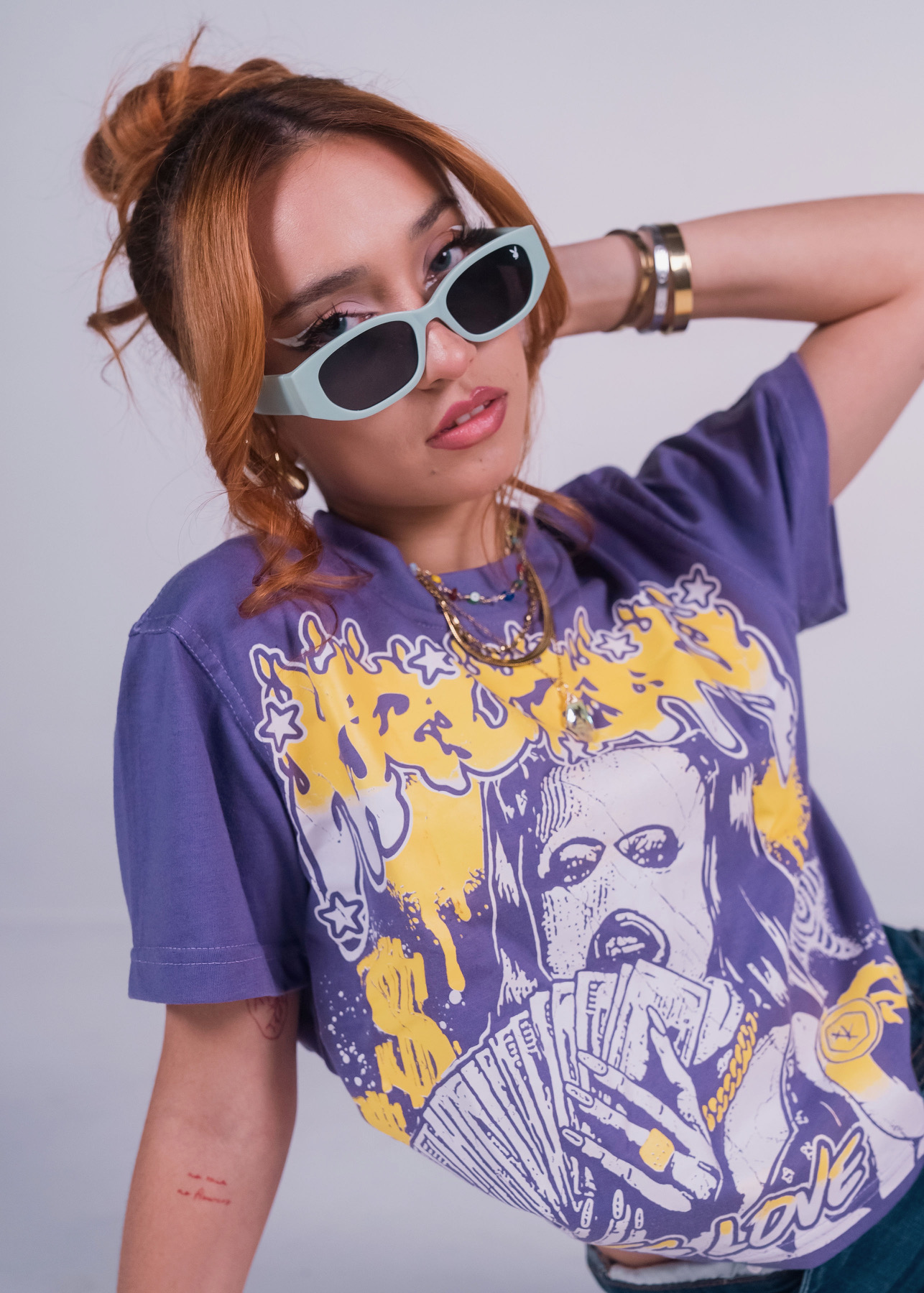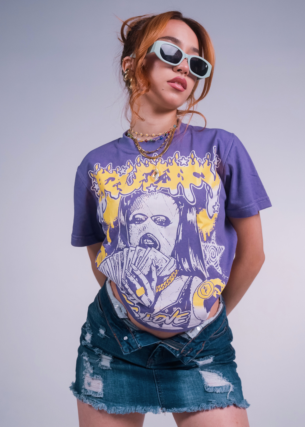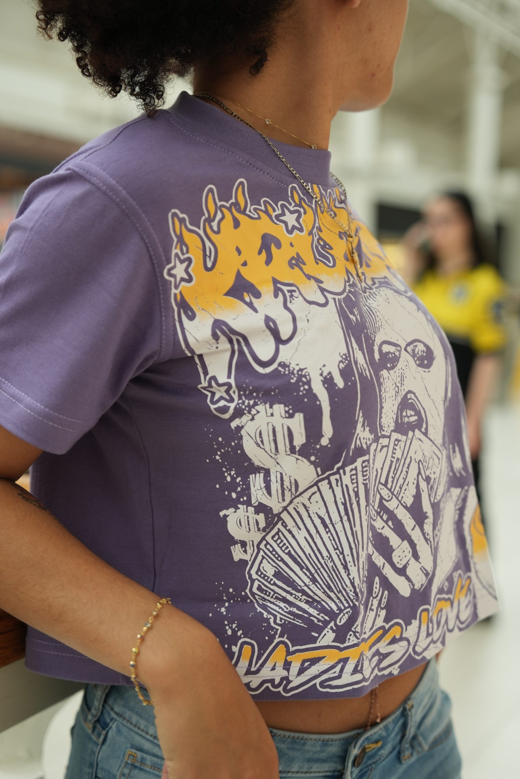 Ladies love Kruzify, but they also love MUNYUN. This bold cropped tee features a gritty, street-inspired of a money-getting Femme fatale crowned with “KRUZIFY” graffiti. “LADIES LOVE” stamped across the bottom seals the attitude. Fitted and fearless, this top is built for women who don’t chase attention – it naturally follows.