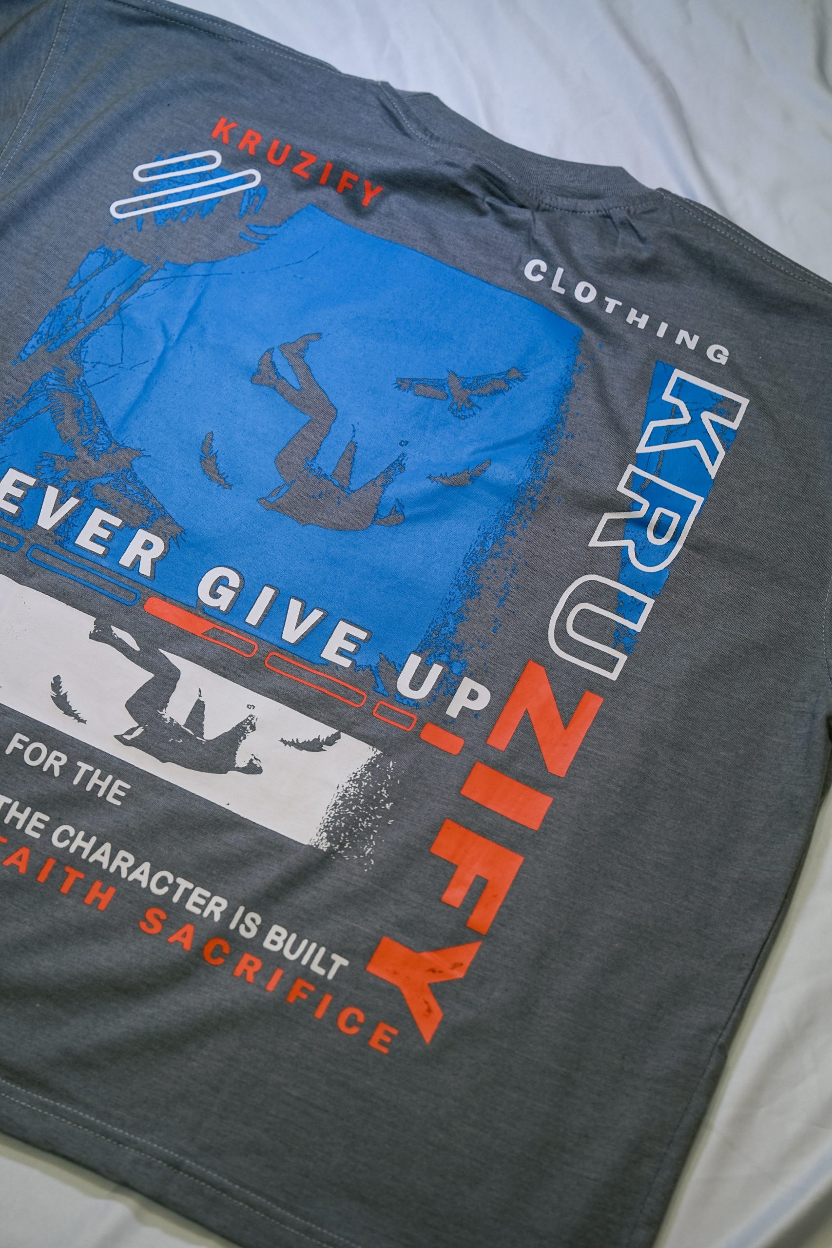‘NEVER GIVE UP’ Tee- Calm Grey