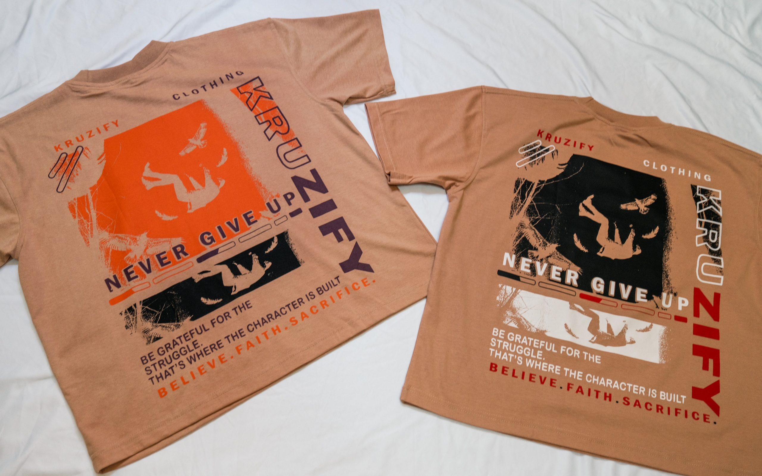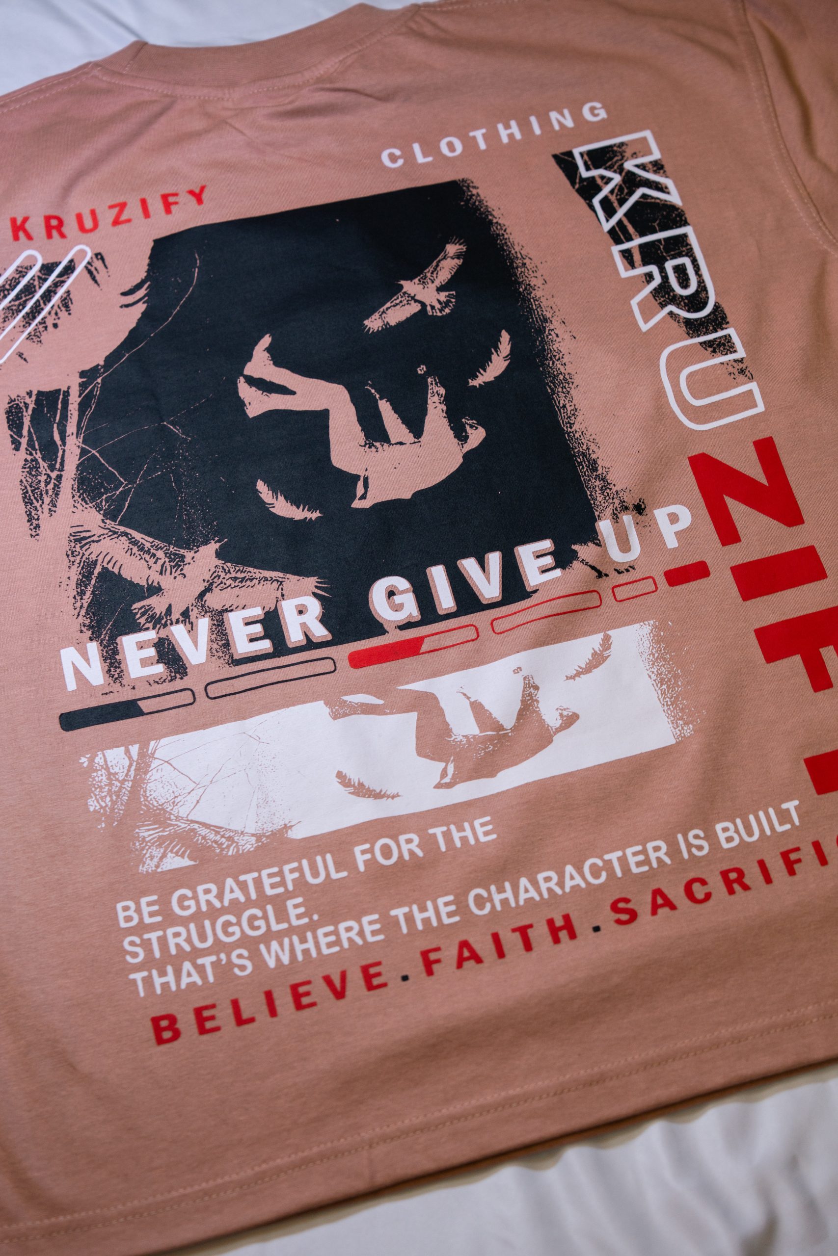 The NEVER GIVE UP Tee is more than just streetwear- it’s a message of resilience, belief, and character. Crafted in 100% custom cut & sewn cotton in blend with a relaxed, drop-shoulder fit, this shirt is built for comfort and presence.