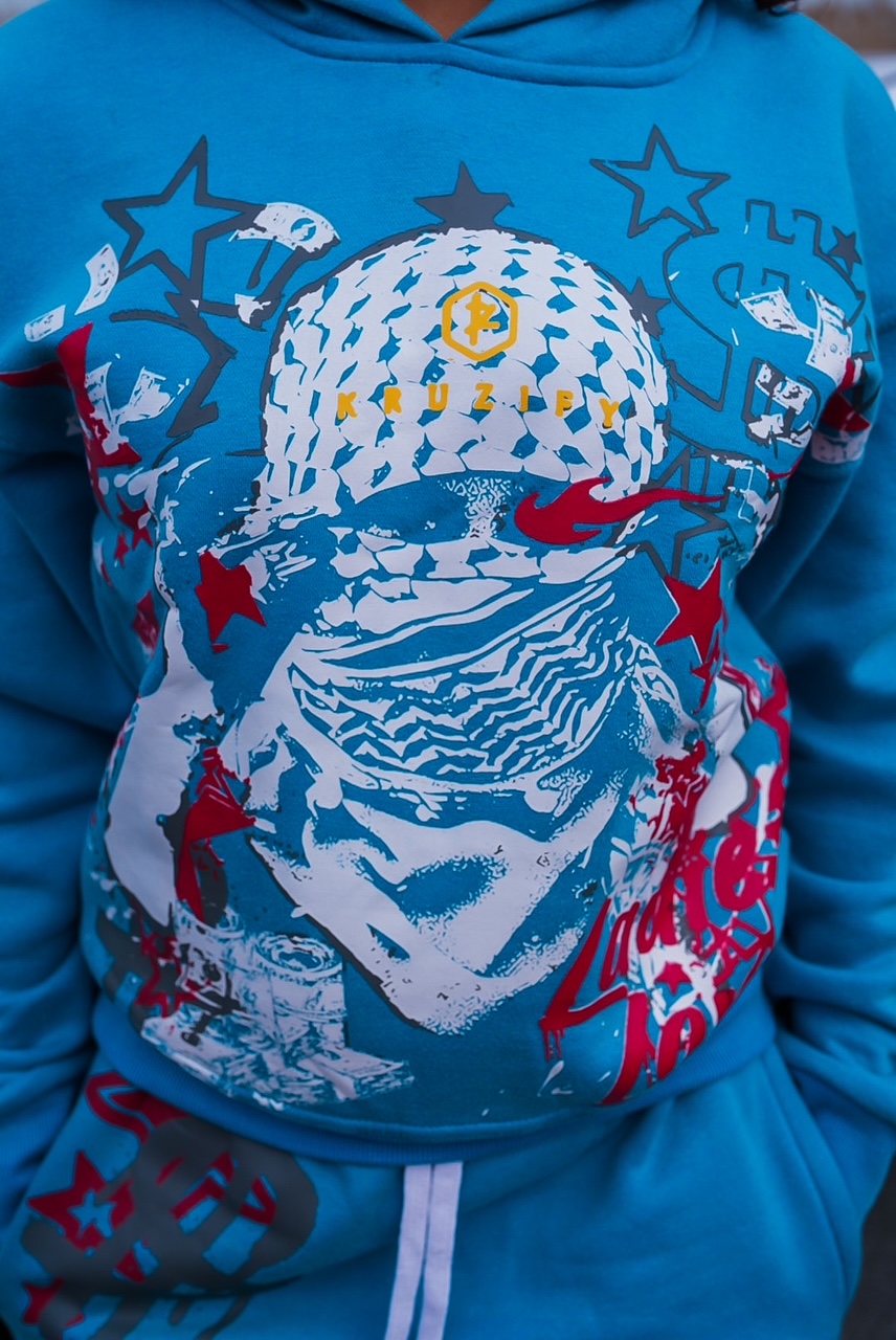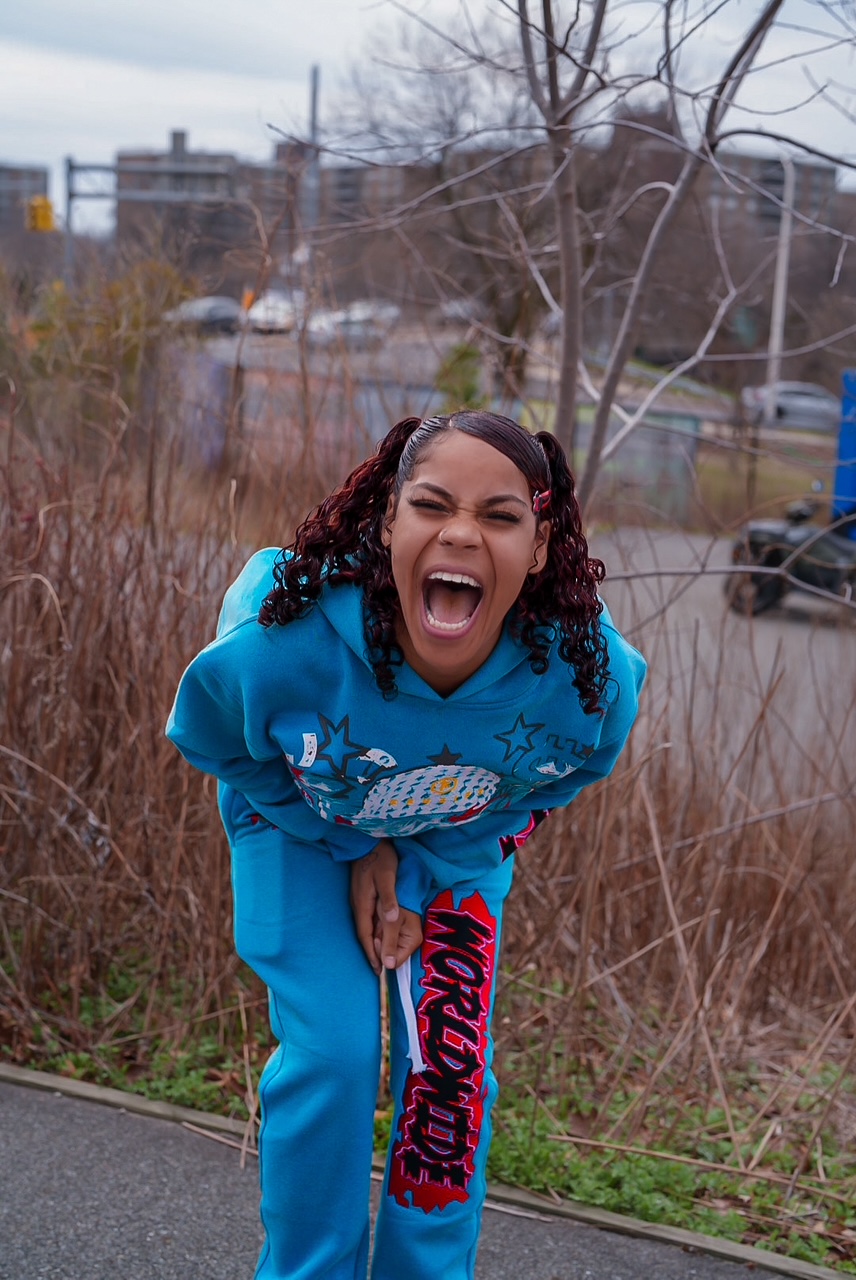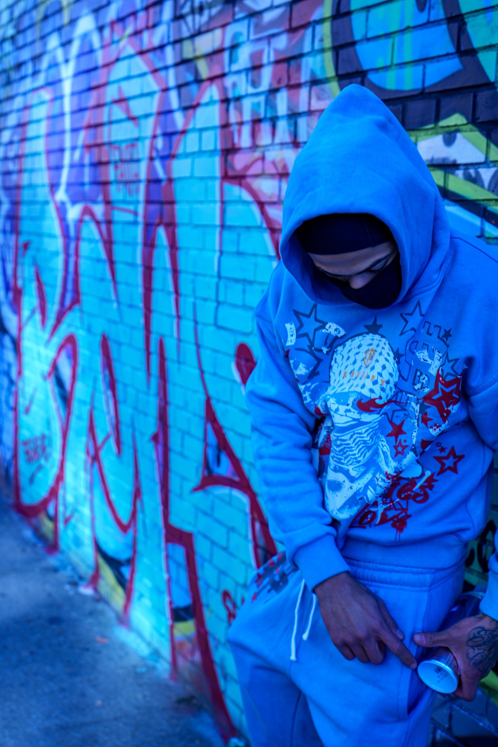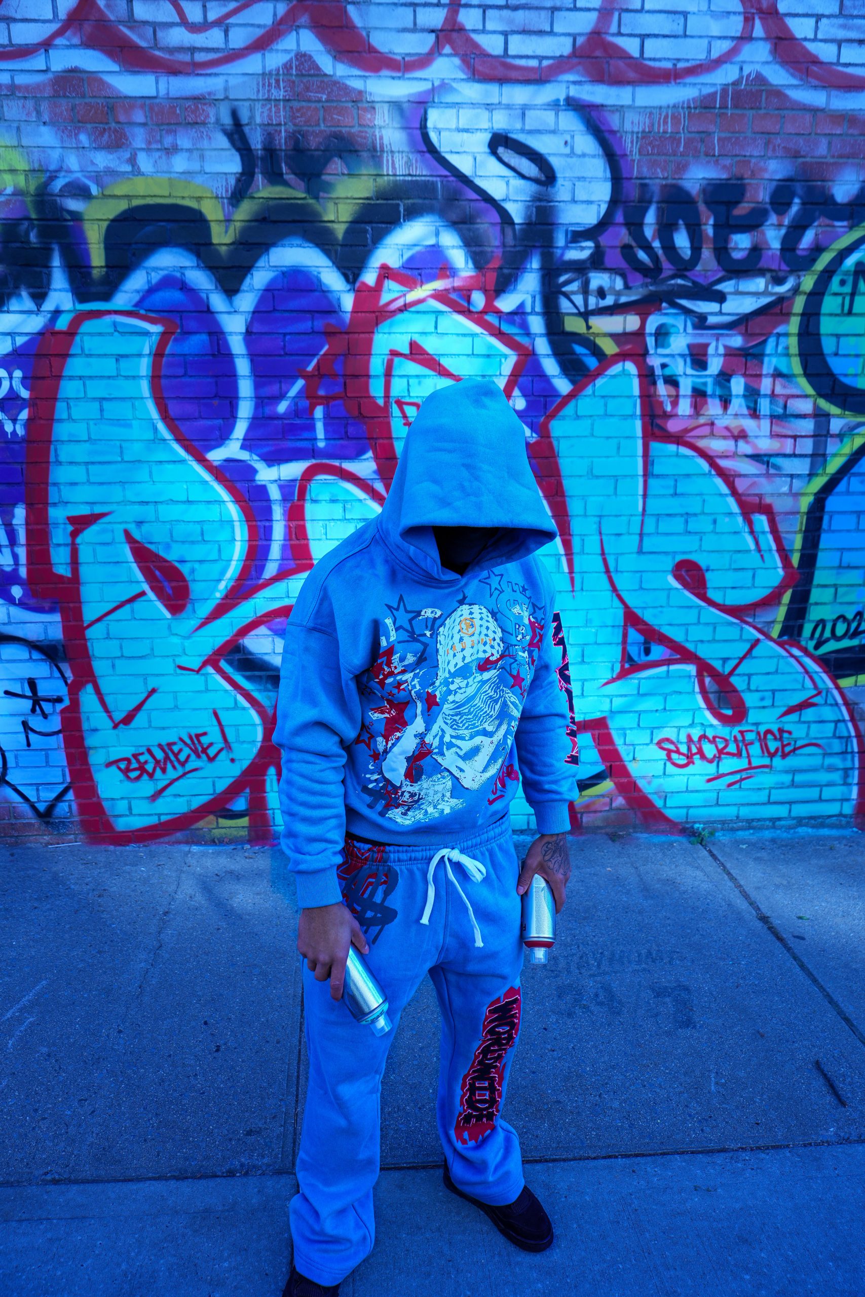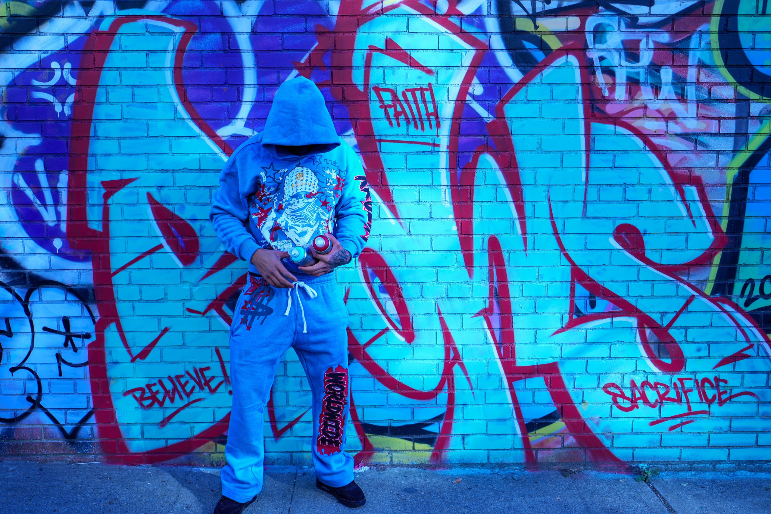 Our new ‘Tali-Bands’ sweatsuit. Unleash bold energy with this piece designed for those who Stand out and stand for something. This 2-piece set features a striking black hoodie and matching joggers, both adorned with graffiti-inspired artwork. The hoodie showcases a bold graphic design that blends urban grit with Artistic flair. The joggers feature “WORLDWIDE” in vibrant typography, making a global statement of unity and purpose.